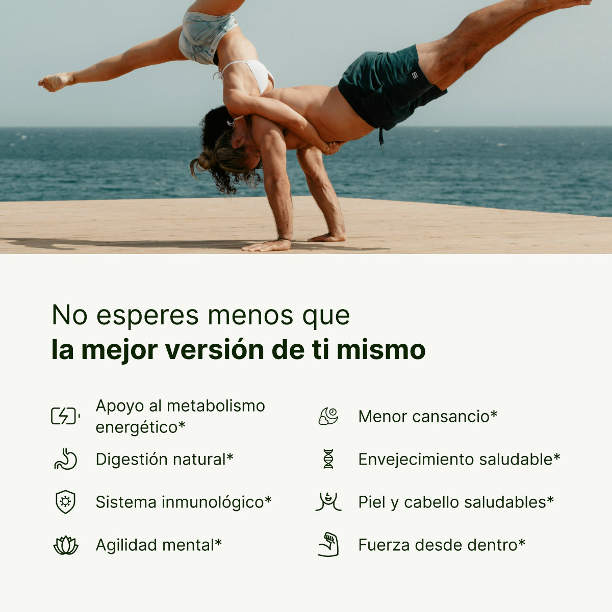 Esta combinación equilibrada te ayuda a afrontar tu día a día con energía*, concentración*, un sistema inmunológico sano* y una buena sensación corporal.