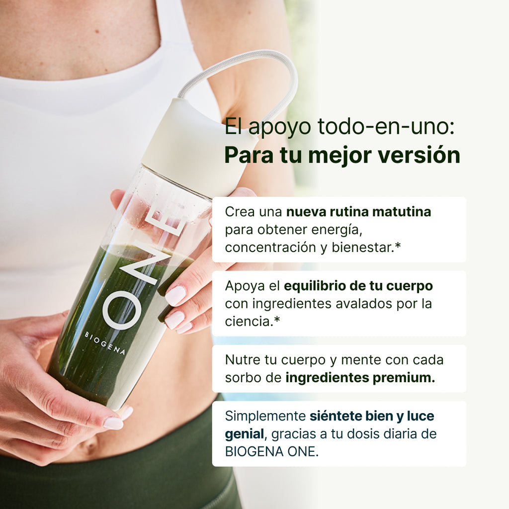 Complementado con coenzima Q10 activada y sustancias vegetales seleccionadas, BIOGENA ONE es sinónimo de precisión científica, calidad probada y un aporte diario de primera calidad.